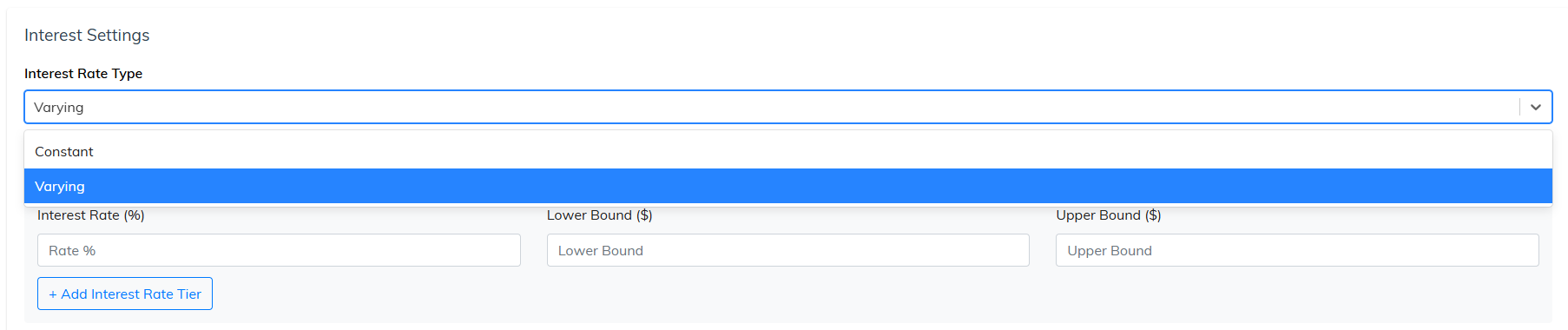 You can create multiple tiers by clicking + Add Interest Rate Tier.