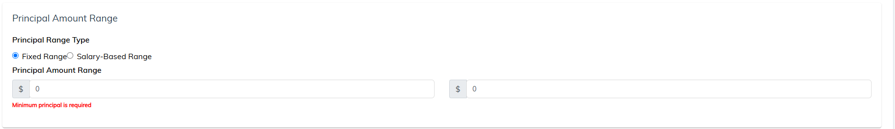 Note: Minimum principal is mandatory for Fixed Range selection.